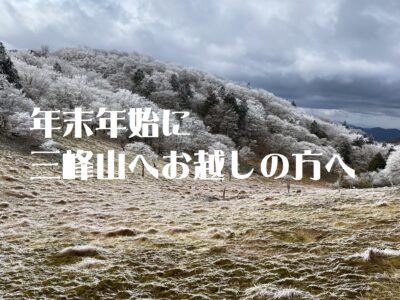 ピックアップ情報 三峰山へお越しの方へ(年末年始のお知らせ) 2026年「三峰山霧氷まつり」開催のお知らせ 三峰山清掃登山の実施について 「フォトコンテスト2025inみつえ」開催中! 「御杖村御朱印スタンプラリー」開催中! 最近のお知らせ 2025.12.25 new 三峰山へお越しの方へ(年末年始のお知らせ) 2025.12.12 2026年「三峰山霧氷まつり」開催のお知らせ 2025.12.10 三峰山清掃登山の実施について 2025.11.13 奈良県御杖村内の紅葉情報 2025.11.10 三峰山へお越しの方へ(注意喚起) お知らせ一覧を見る